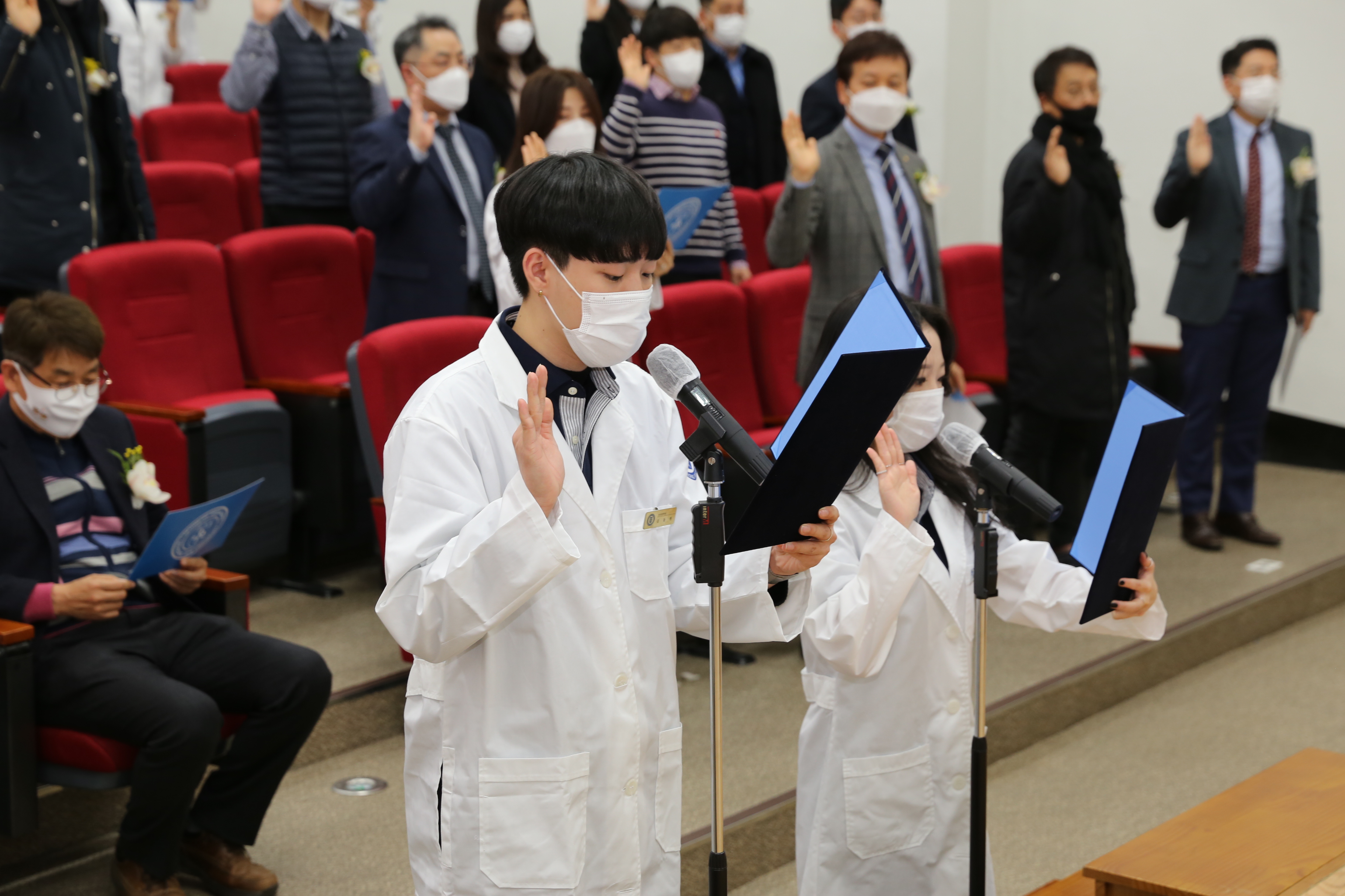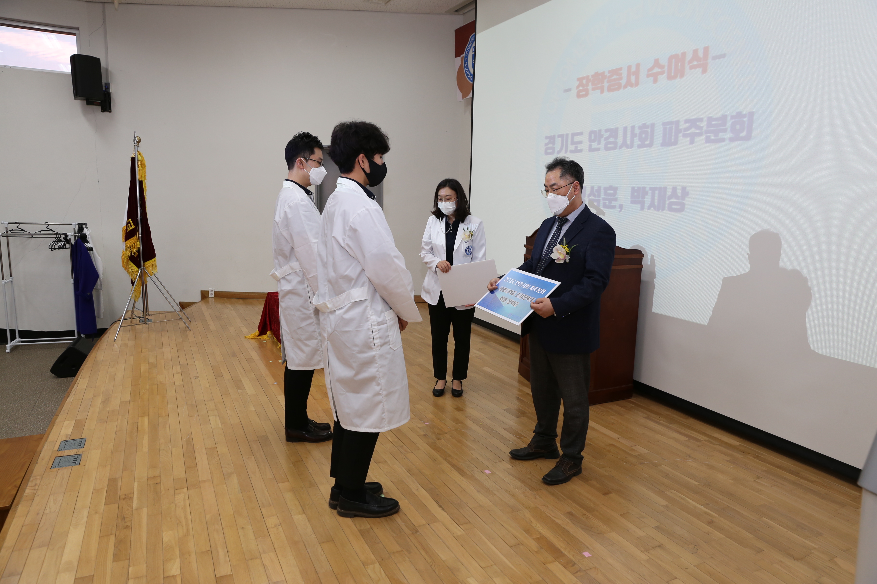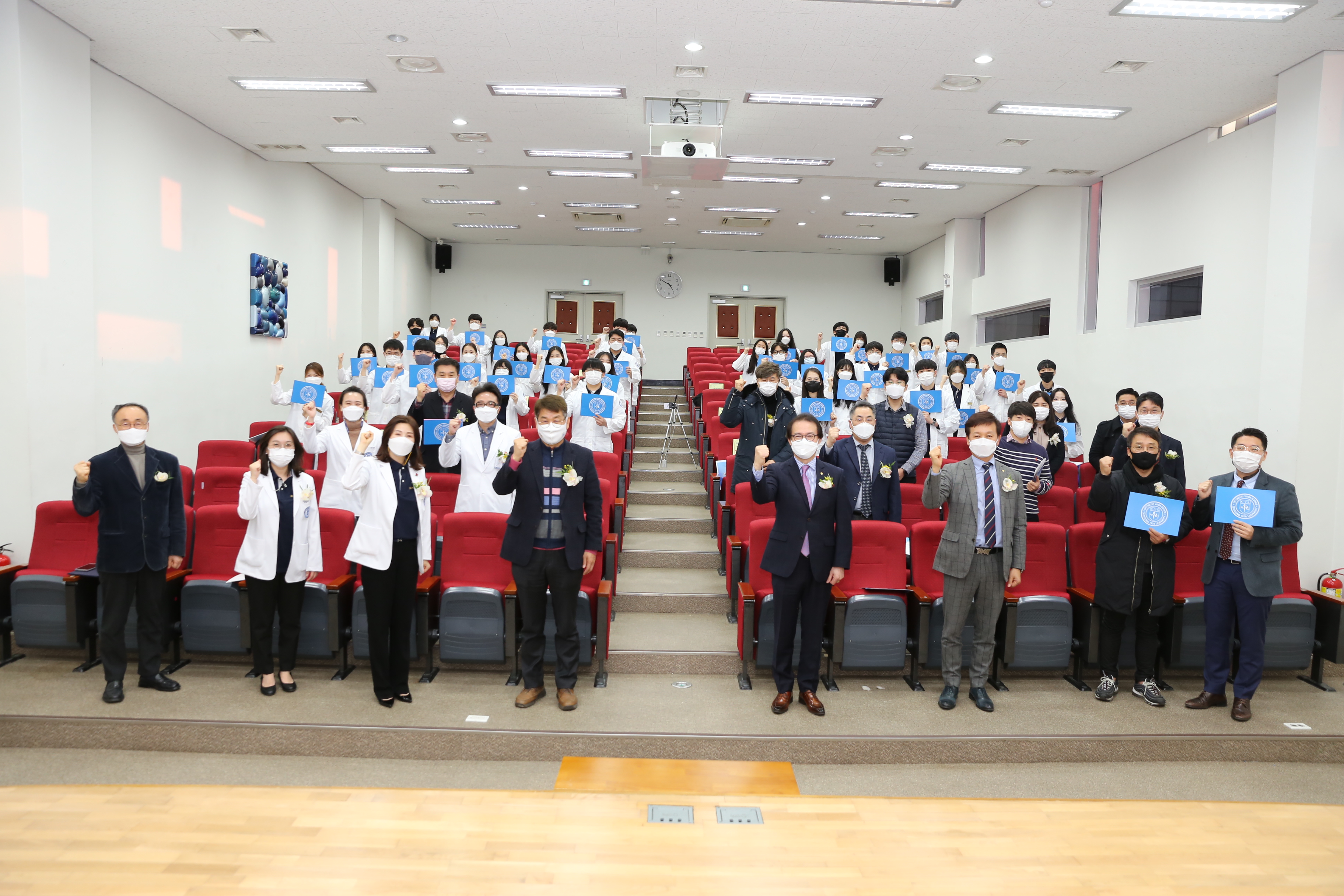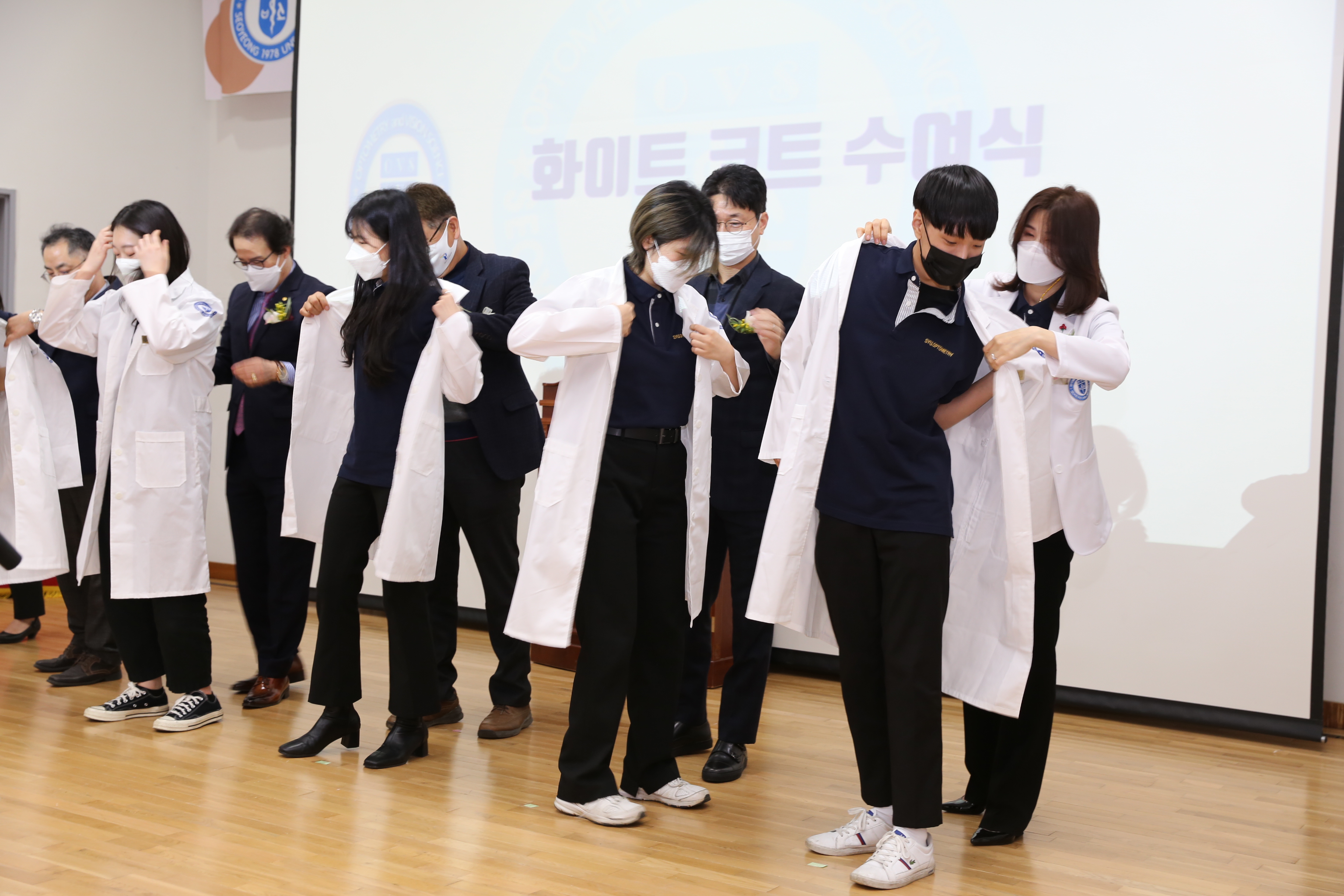 특별장학금 전달과 더불어 학생들에게 화이트코트를 직접수여해주셨습니다.