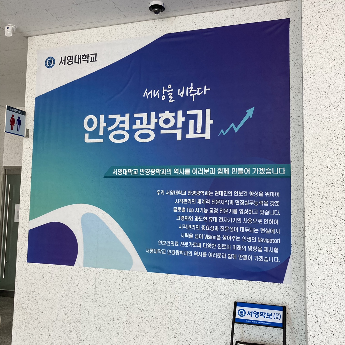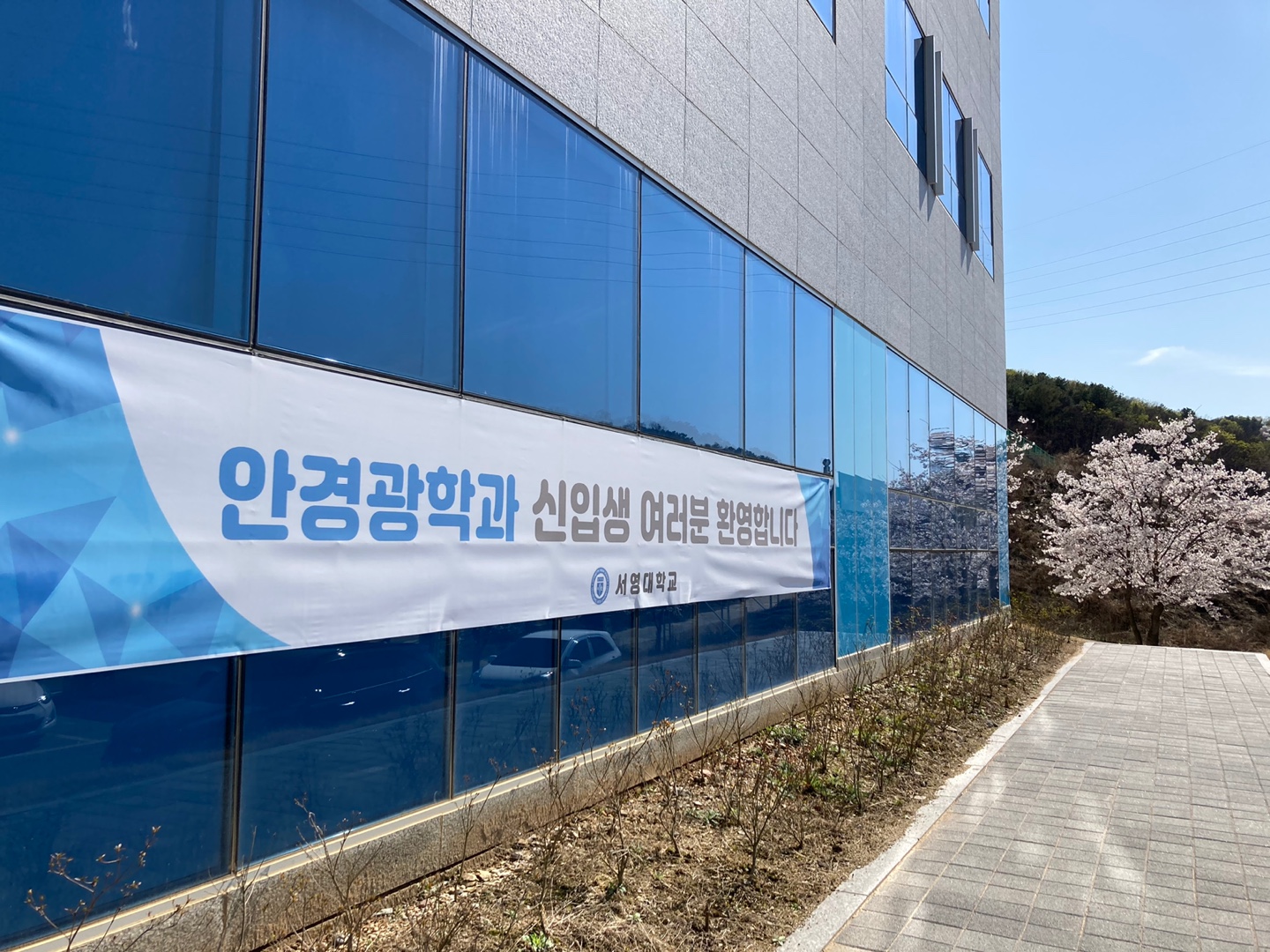 21학년 새학기를 맞아 안경광학과 학생회에서 학과를 소개하기 위한 현수막을 제작하였습니다.