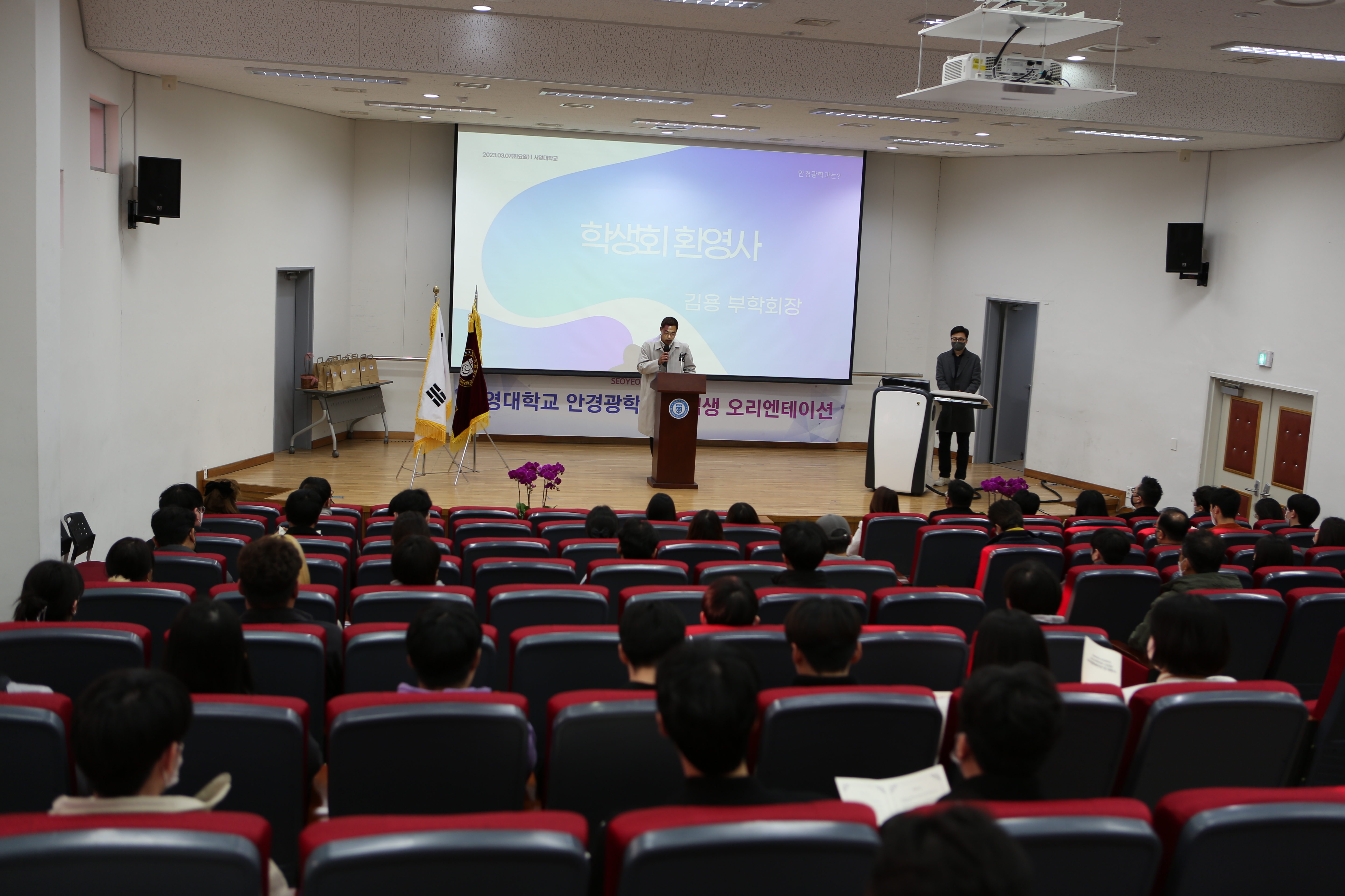 안경광학과 23학년도 신입생과 2,3학년 전체 재학생이 본 행사를 통해 처음으로 한 장소에 모이게 되었습니다. 행사사회는 이두환 교수님께서 진행해 주셨습니다. 학생회의 환영인사를 시작으로 행사가 시작되었고 학과장님께서 신입생들을 환영해 주시고, 대학생활에 대한 안내를 진행해 주셨습니다. 또한 서영대학교 안경광학과의 수업을 담당해주시는 교수님들께서 자리해 주셔서 함께 인사를 나눌 수 있는 시간이 되었습니다. 특별히 본 행사를 위해서 산업체에서 후원해 주셔서 많은 자리에 참석해 주신 분들을 위한 행운권 추첨 행사가 진행되어 참석하신 분들에게 선물을 드릴수 있었습니다. 마지막으로 3학년부터 1학년 까지 간단한 자기소개를 통해 서로 얼굴을 익힐수 있는 대면식 행사가 진행되었습니다. 본 행사를 준비한 안경광학과 학생회 여러분 및 많은 도움을 주신 재학생 여러분 모두 감사합니다. 무엇보다도 23학번이 되신 신입생 여러분 환영합니다.! 여러분의 새로운 출발을 서영대학교에서 응원하겠습니다.
