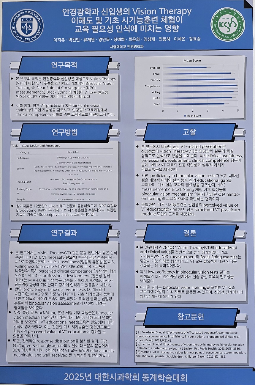 2025년 대한시과학회 동계학술대회 포스터 최우수상을 수상했습니다.