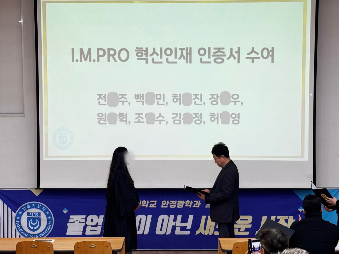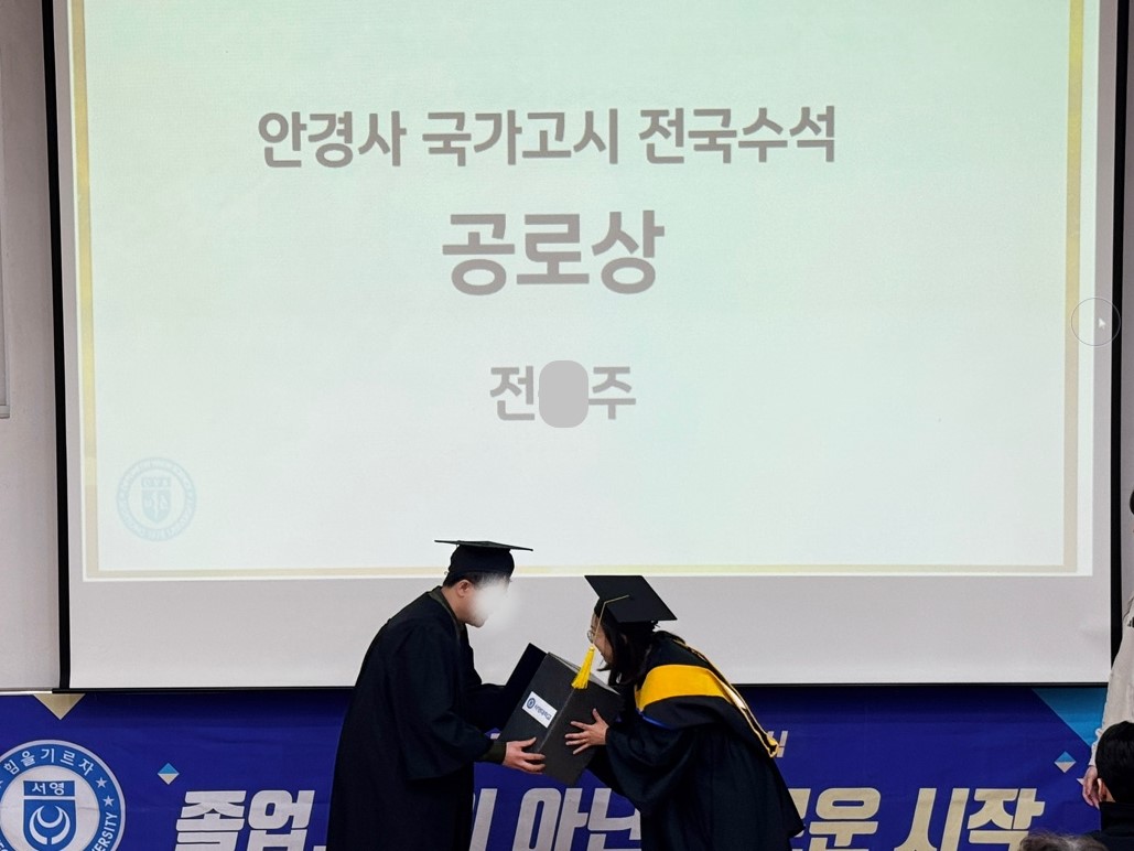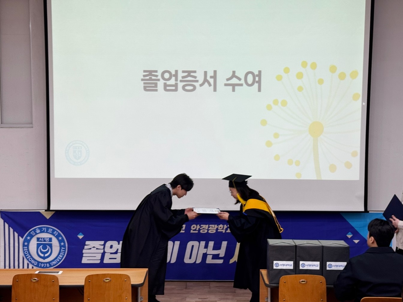 서영대학교 안경광학과 제 4회 졸업식이 2026년 2월 10일 화요일에 진행되었습니다.학과장님께서 참석한 모든 졸업생들에게 개별로 졸업증서를 수여해주셨고,3년간의 학업을 우수한 성적으로 졸업한 학생들에겐 시상이 이어졌습니다.