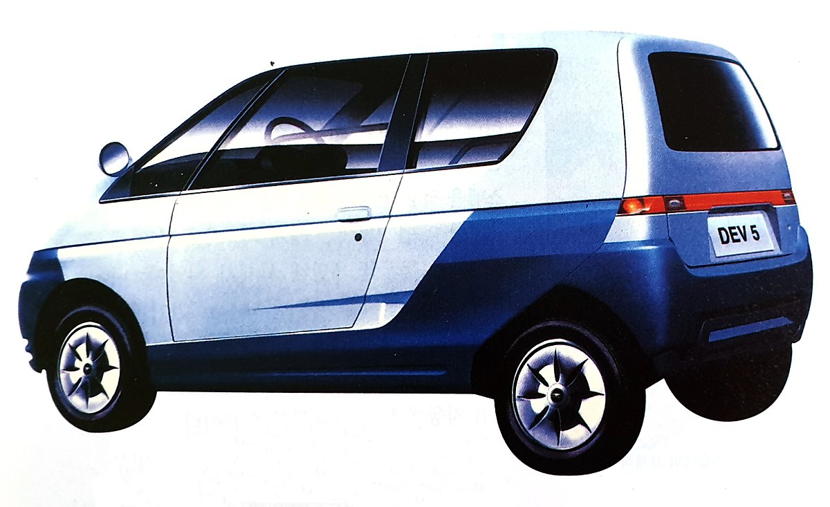 그다음 주자는 국내 B 기업이었습니다. B 기업은 기존의 자동차를 개조해 만든 전기차를 통해 개발에 뛰어들었는데요. 1993년 르망이라는 자동차를 개조해 만든 DEV-1을 시작으로 에스페로의 DEV-2, 씨에로의 DEV-4, 그리고 독자적으로 개발된 DEV-5까지 나오면서 ‘DEV 시리즈’가 만들어졌죠. DEV-5는 당시 기존 자동차의 엔진 위치에 배터리를 넣는 개조법 대신 차체 바닥에 배터리를 설치해 실내공간과 안전성 문제를 동시에 해결했답니다.
