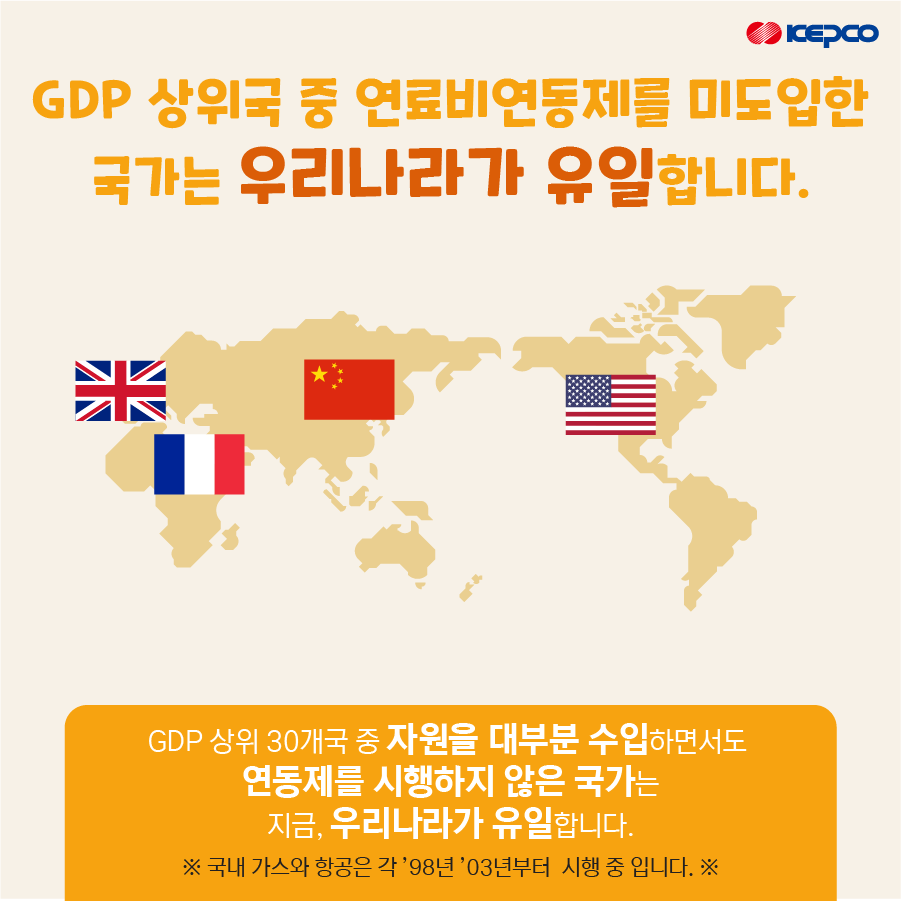 GDP 상위국 중 연료비연동제를 미도입한 국가는 우리나가 유일한데요.