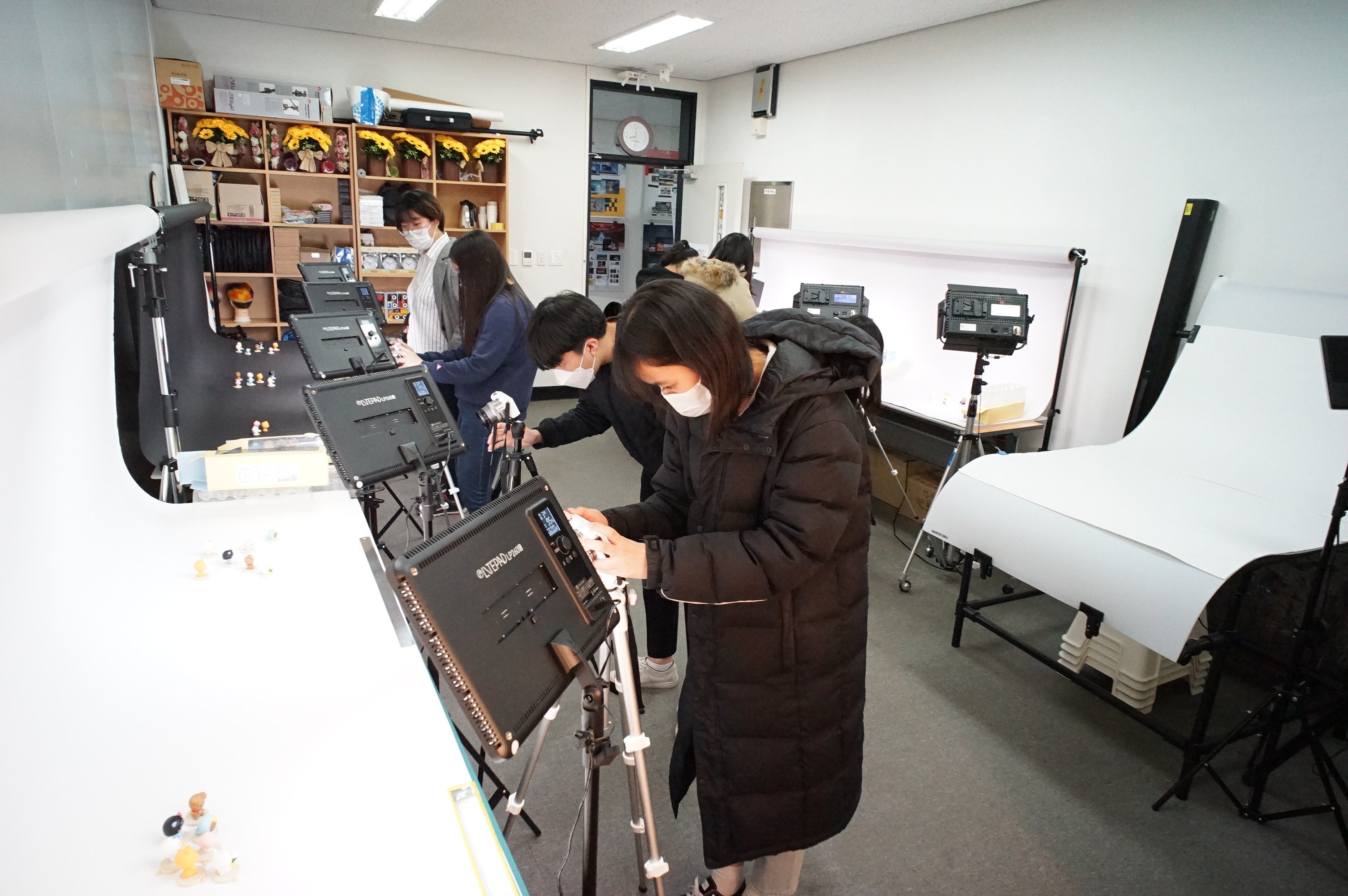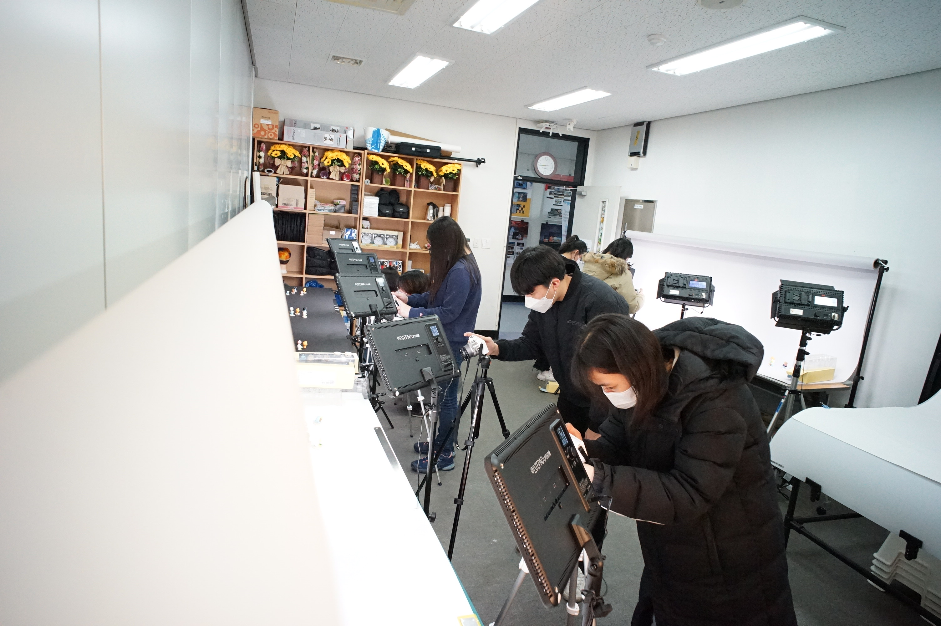 파주 지역 내 세경고등학교 학생들과 함께하는 도제 수업 중 '광고 사진 촬영 수업 중 사진입니다