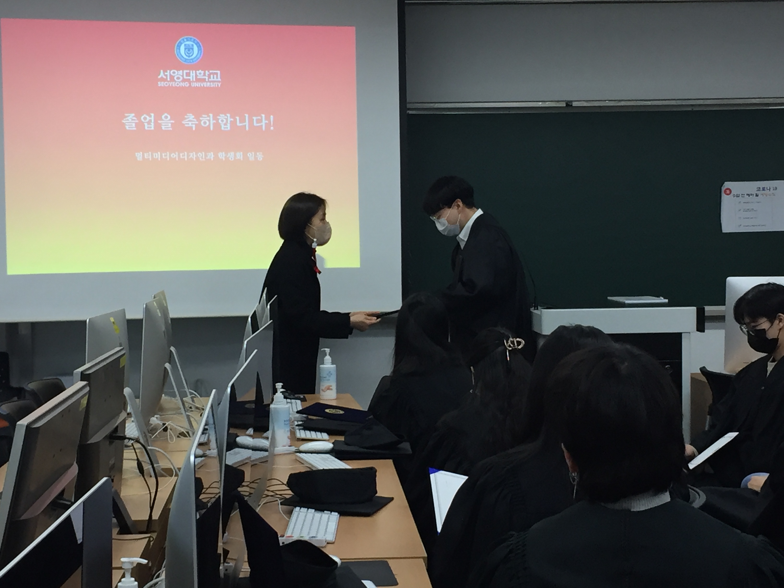 코로나 기승으로 희망자에 한하여 간략히 진행된 학위수여식이였습니다.