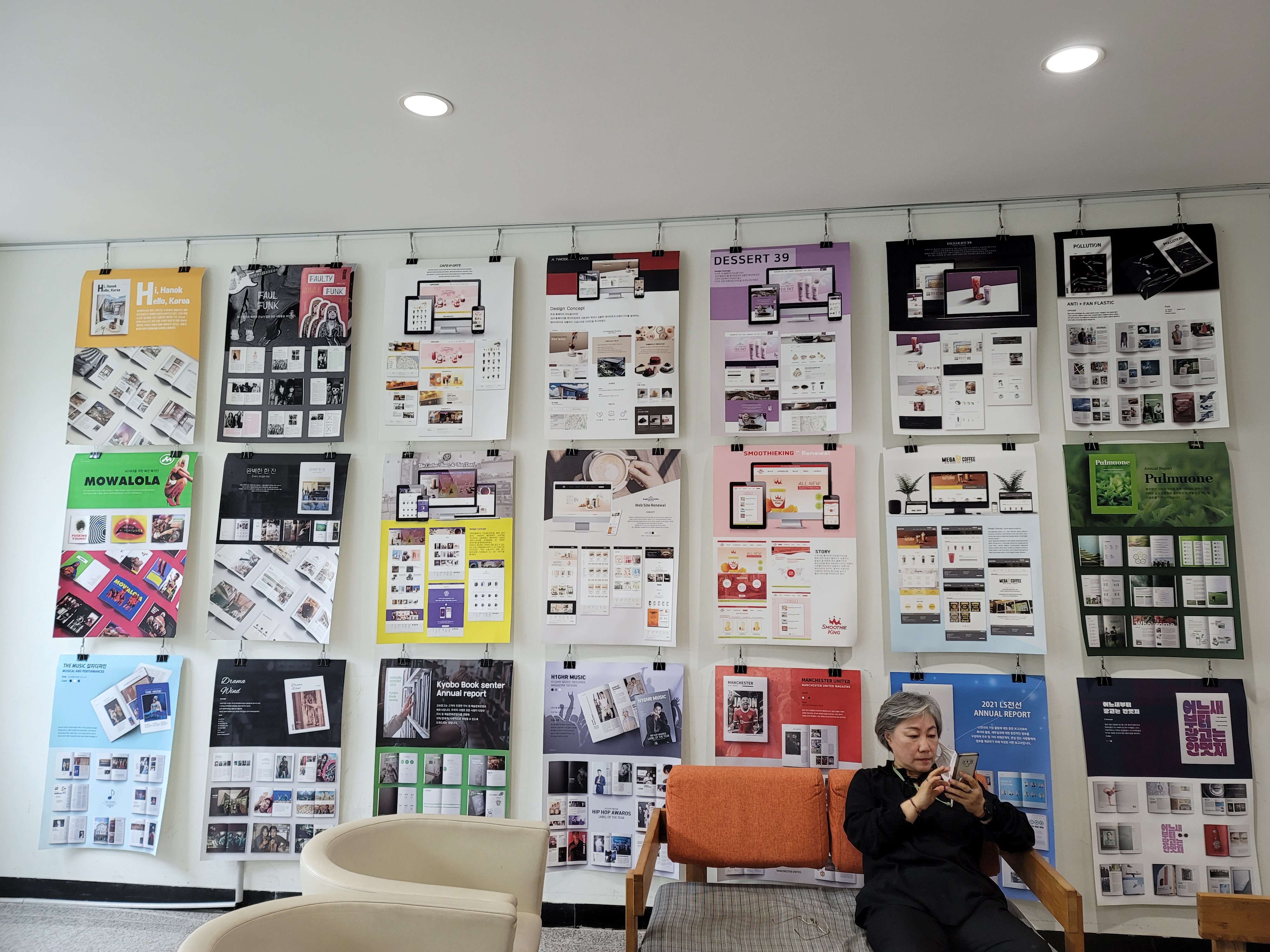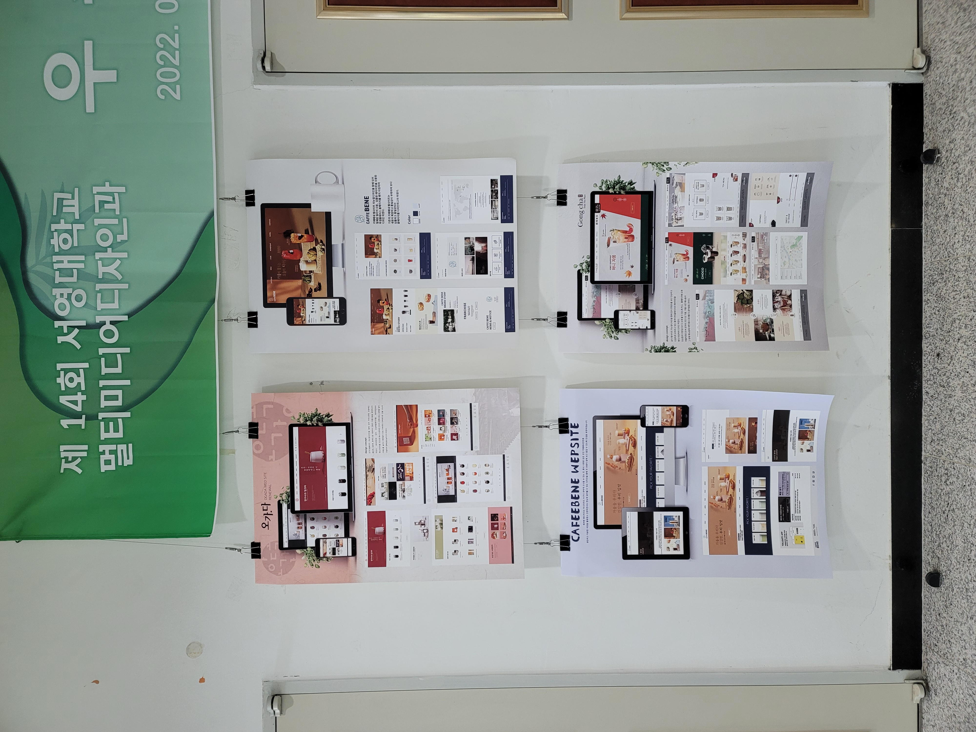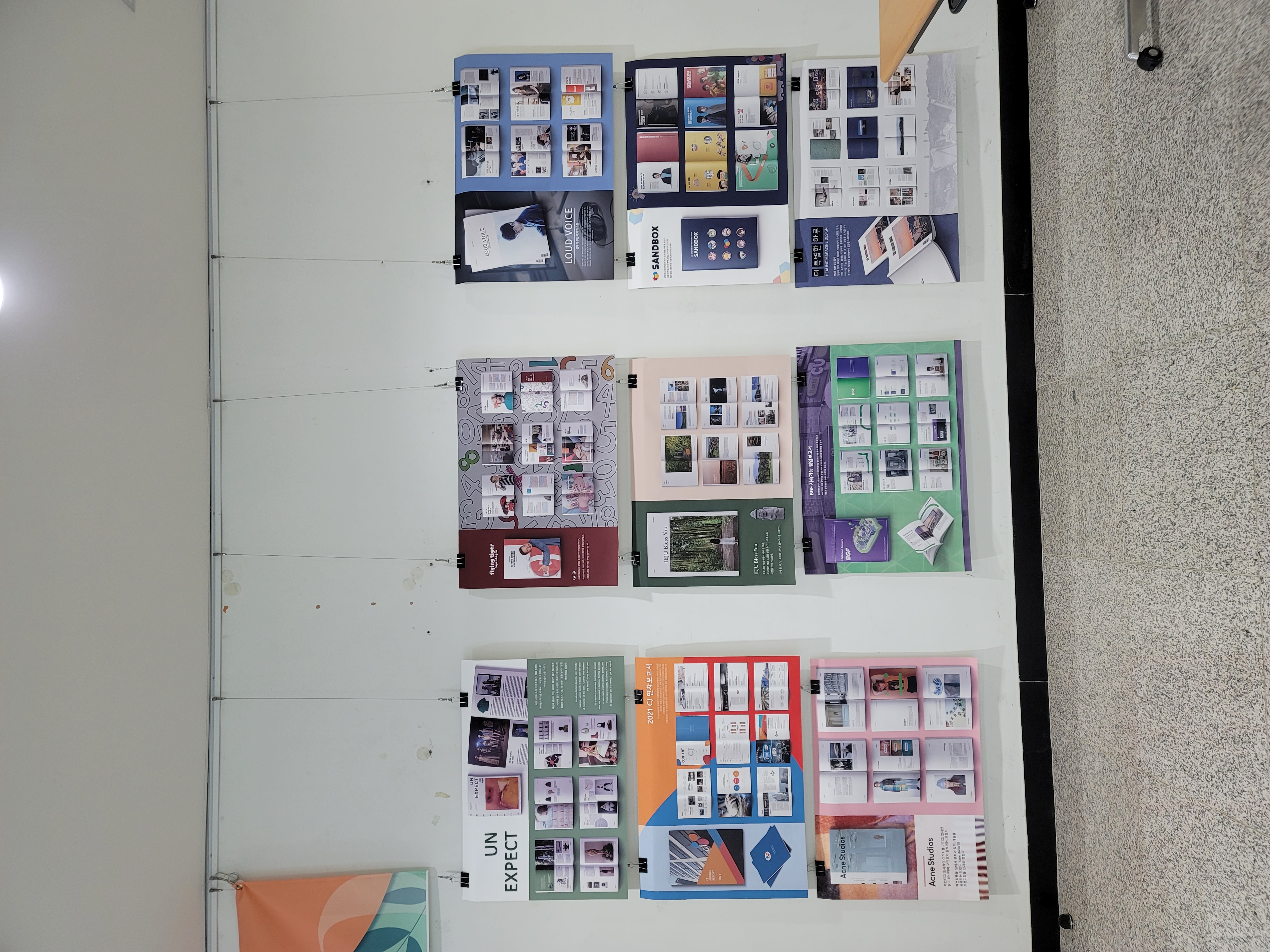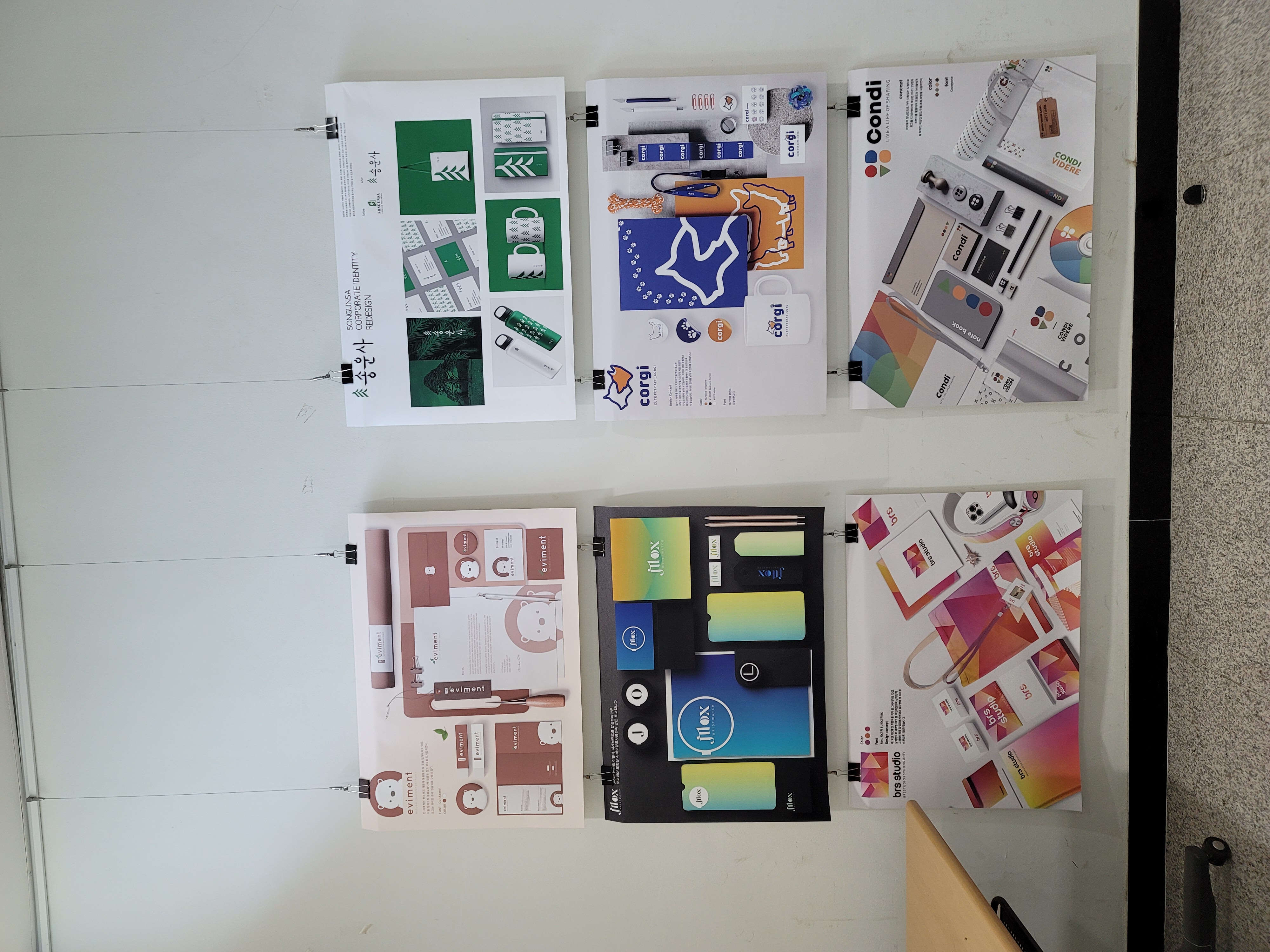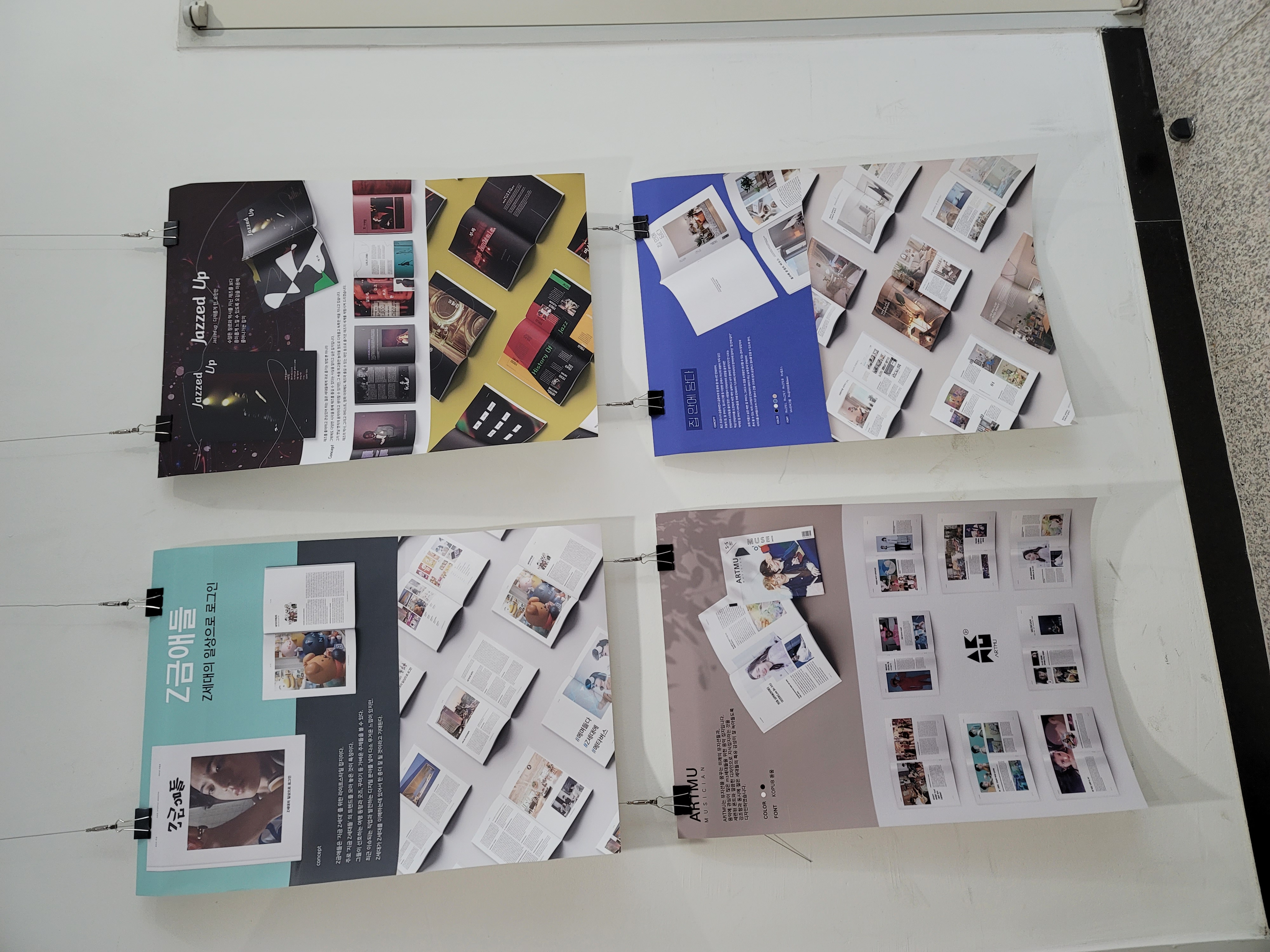 과제 전시 내용은 수업 시간에 만들어온 잡지/브랜드디자인/앱 디자인으로 구성되어 있습니다.